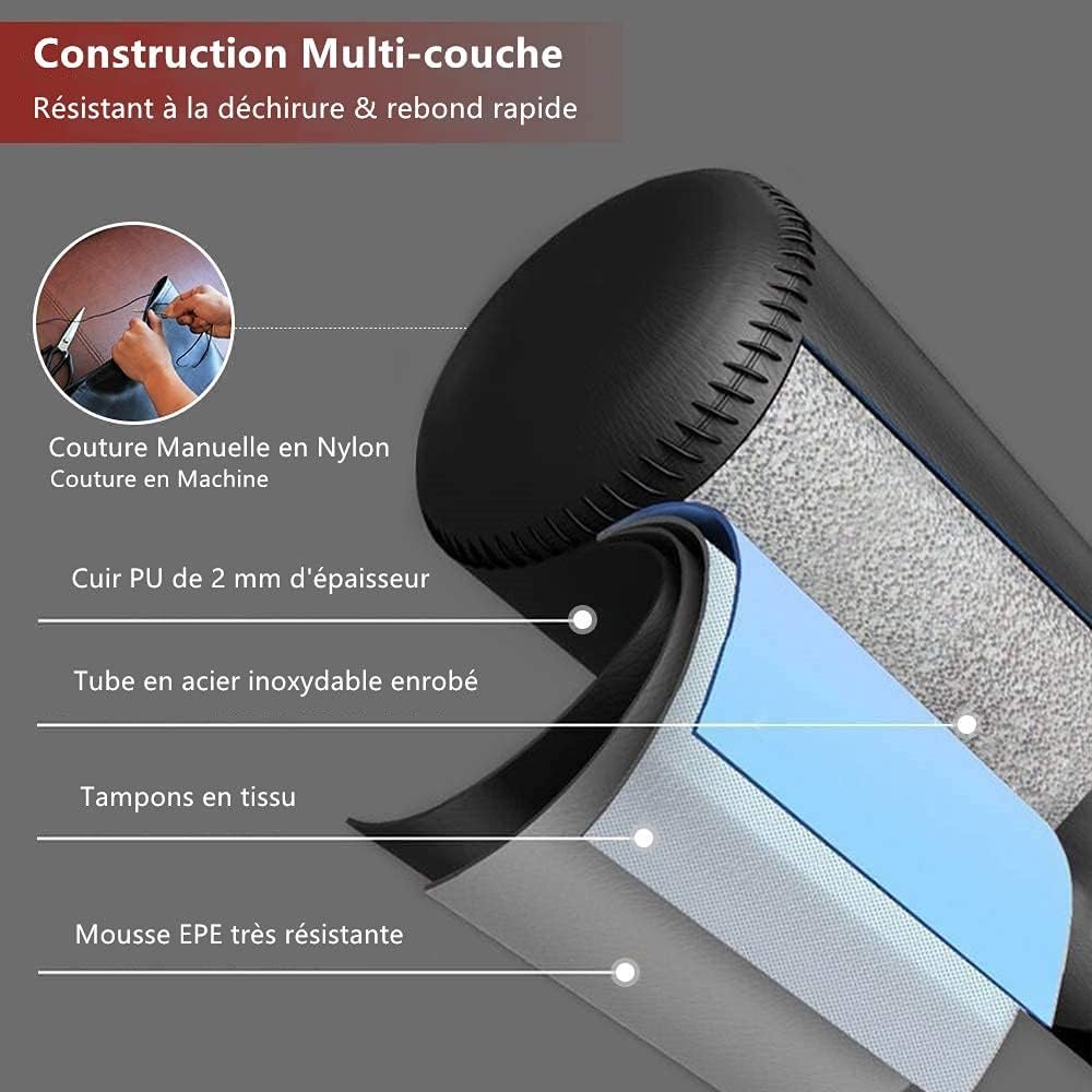 | Corps du sac de frappe en mousse amortissante + PU 2 mm, bonne durabilité | Expédié en 2 colis, il faut parfois attendre 1–2 jours pour tout recevoir |